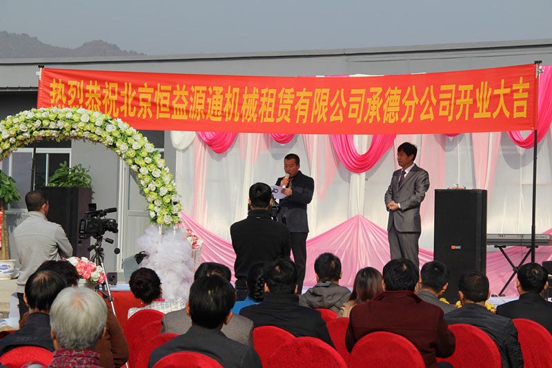 秋高氣爽,時光鎏金。通過前期緊鑼密鼓的籌備,今天,北京恒益源通機械租賃有限公司承德分公司正式開業(yè)了!在這喜慶的日子里,我謹(jǐn)代表公司全體員工向關(guān)心和支持公司籌建工作的各級領(lǐng)導(dǎo)、業(yè)界同仁及各位嘉賓朋友們表示最熱烈的歡迎和衷心的感謝!
