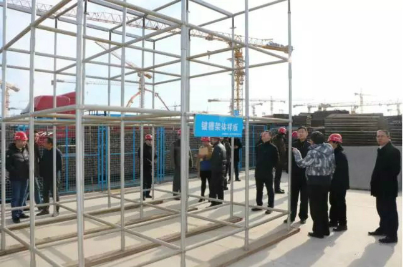 張志威總工向與會(huì)代表介紹了北京新機(jī)場項(xiàng)目總體情況,中建八局負(fù)責(zé)建設(shè)面積為50萬平米,將全部采用鍵槽腳手架。中建八局自2013年起使用鍵槽腳手架,三年來累計(jì)使用鍵槽架的工程項(xiàng)目超過150萬平米。該產(chǎn)品具有安全、施工便捷等優(yōu)點(diǎn),深受中建八局各項(xiàng)目部喜愛。